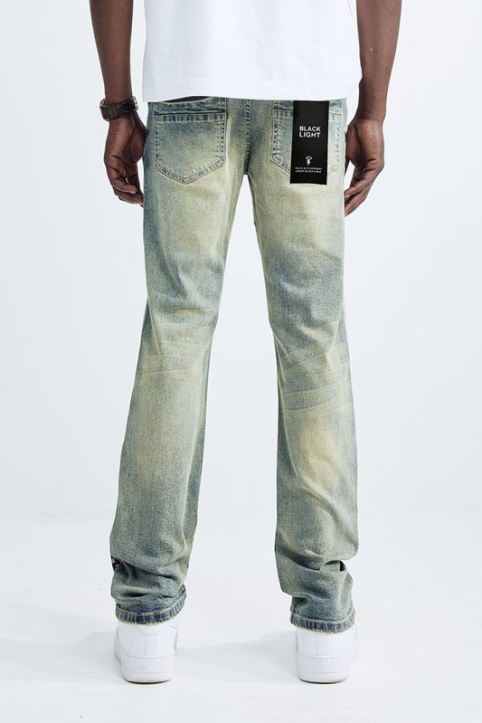 Cargo Straight Fit Patch Work Jeans - MD Blue