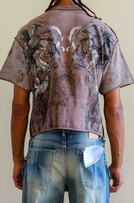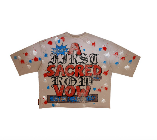 First Row -Multi Stone A Scared Vow Cropped Fitted Tee - DK Grey