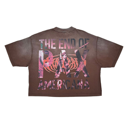 Washed Heavy Tee Rhinestone Details - Brown