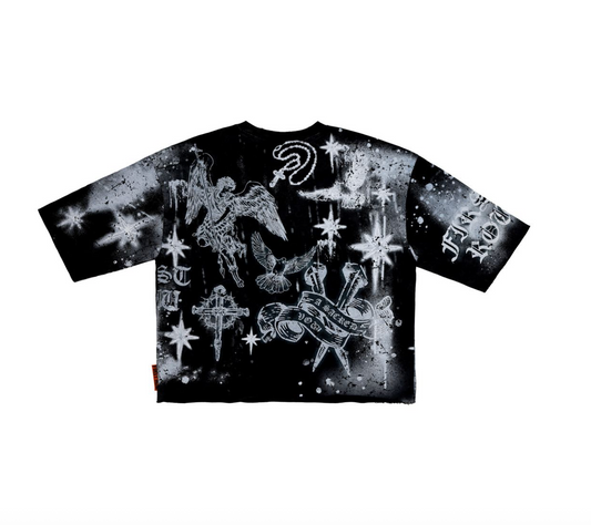 First Row Lost Utopia Myth Cropped Tee - Black