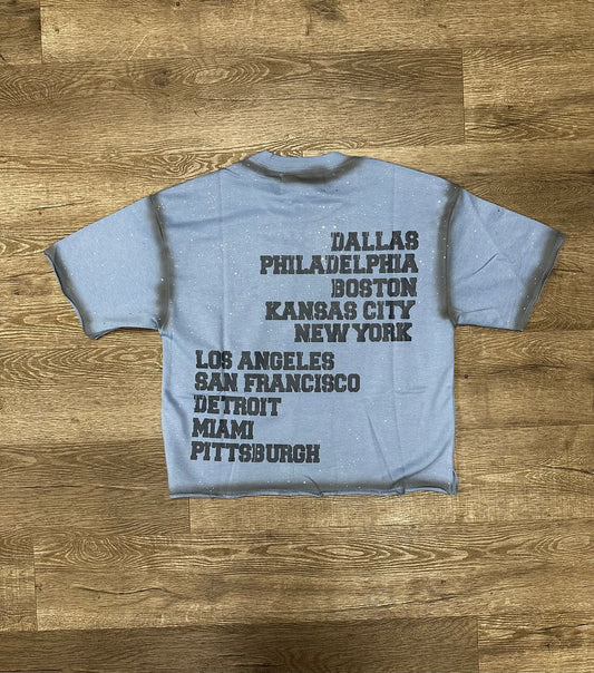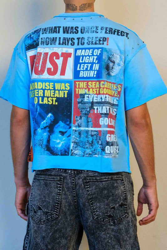 First Row Lost Utopia Ruins Cropped Tee - Blue