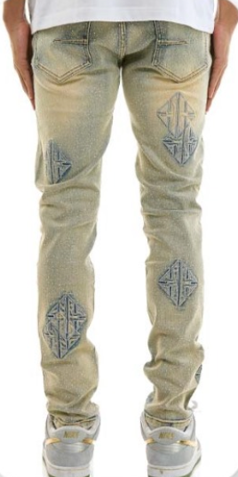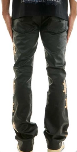 Logo Skinny Flare Stacked Fitted Jeans - Black/Gold