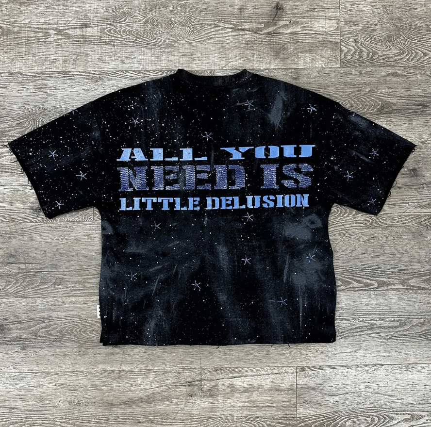 Delusion Rhinestone Cropped Tee - Black
