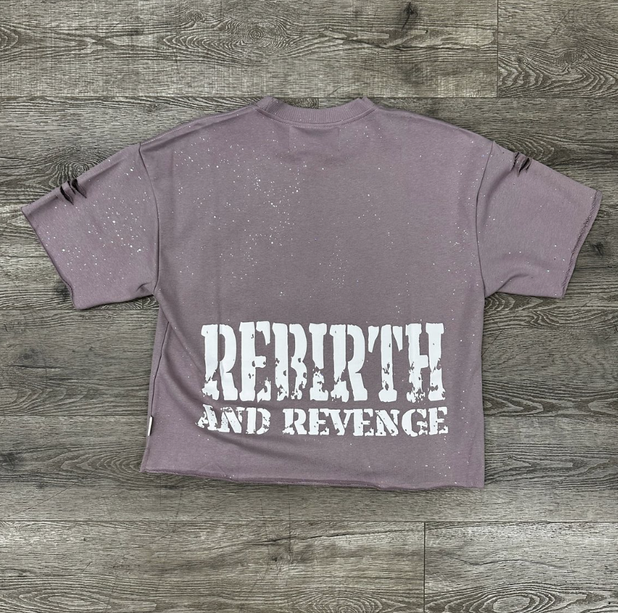 This purple cropped tee features eye-catching rhinestone detailing that elevates casual wear with a touch of edgy sophistication. Perfect for layering or standalone styling, it delivers bold statement appeal with a contemporary fit.