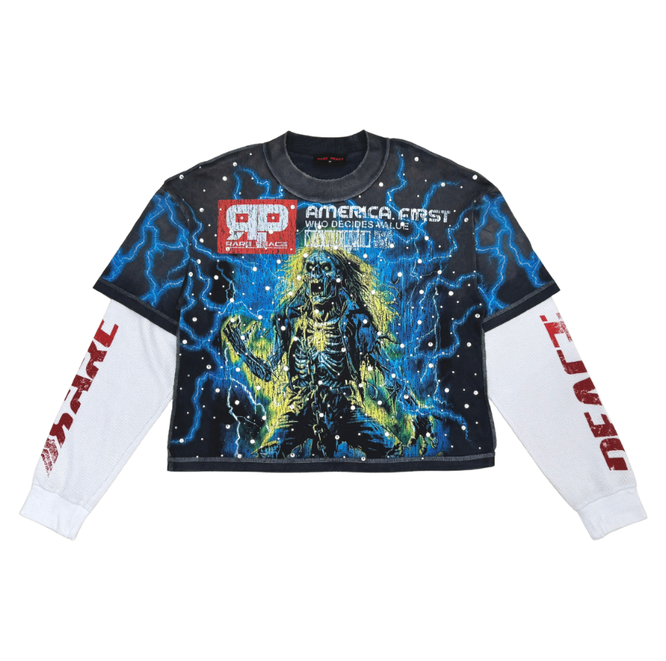 The Shocked Zombie Twofer in grey delivers edgy graphic artistry on a premium dual-layer silhouette that commands attention. Crafted with quality construction, this piece balances bold visual impact with everyday wearability for those who embrace distinctive style.