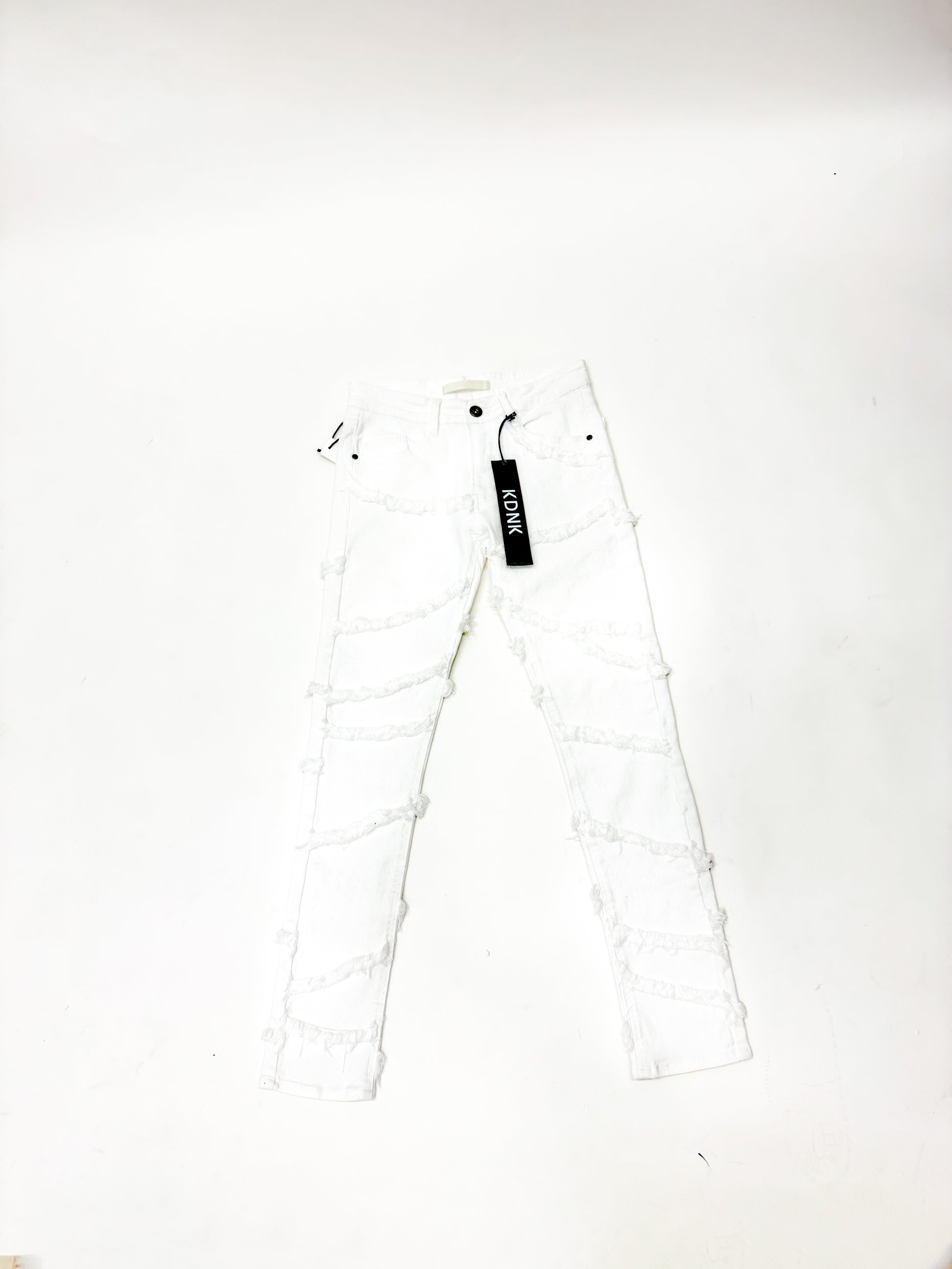 Step up your fashion game with these White Ripped Skinny Jeans! With their fashionable design and trendy ripped details, these jeans are sure to turn heads wherever you go. The flattering skinny fit will accentuate your curves and give you a sleek and stylish look. Don't miss out on this must-have addition to your wardrobe - order your pair of White Ripped Skinny Jeans today!